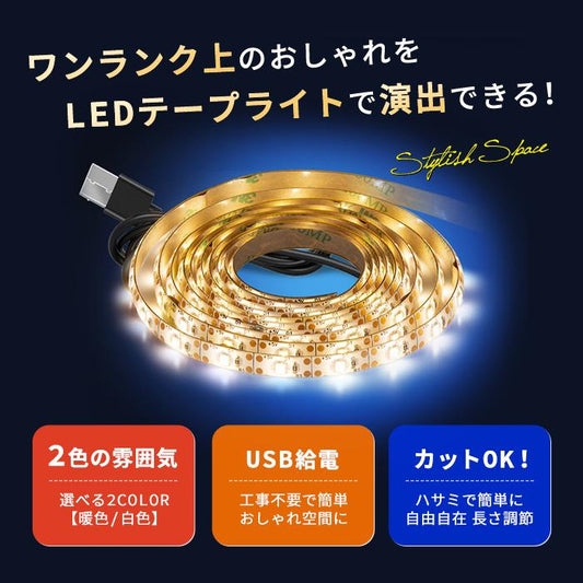 LEDテープライト usb 防水 led 間接照明 電球色 昼光色
